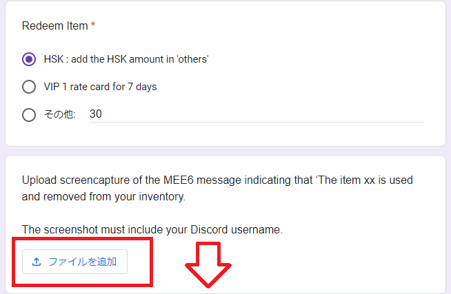🔍Redeem Item(交換枚数)の入力例(HSKの交換は10個単位です。)