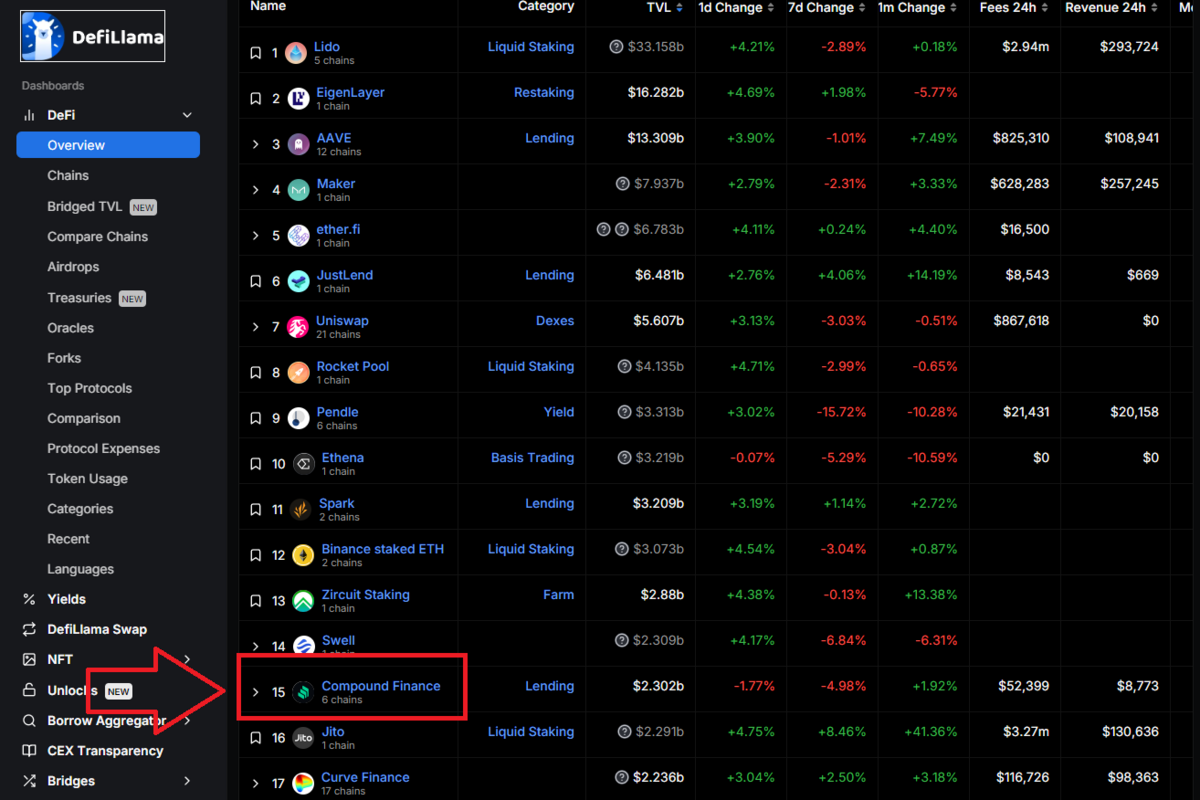 Defillamaでも全体の15位につける、歴史ある巨大プロトコルです。