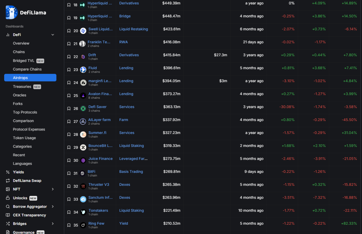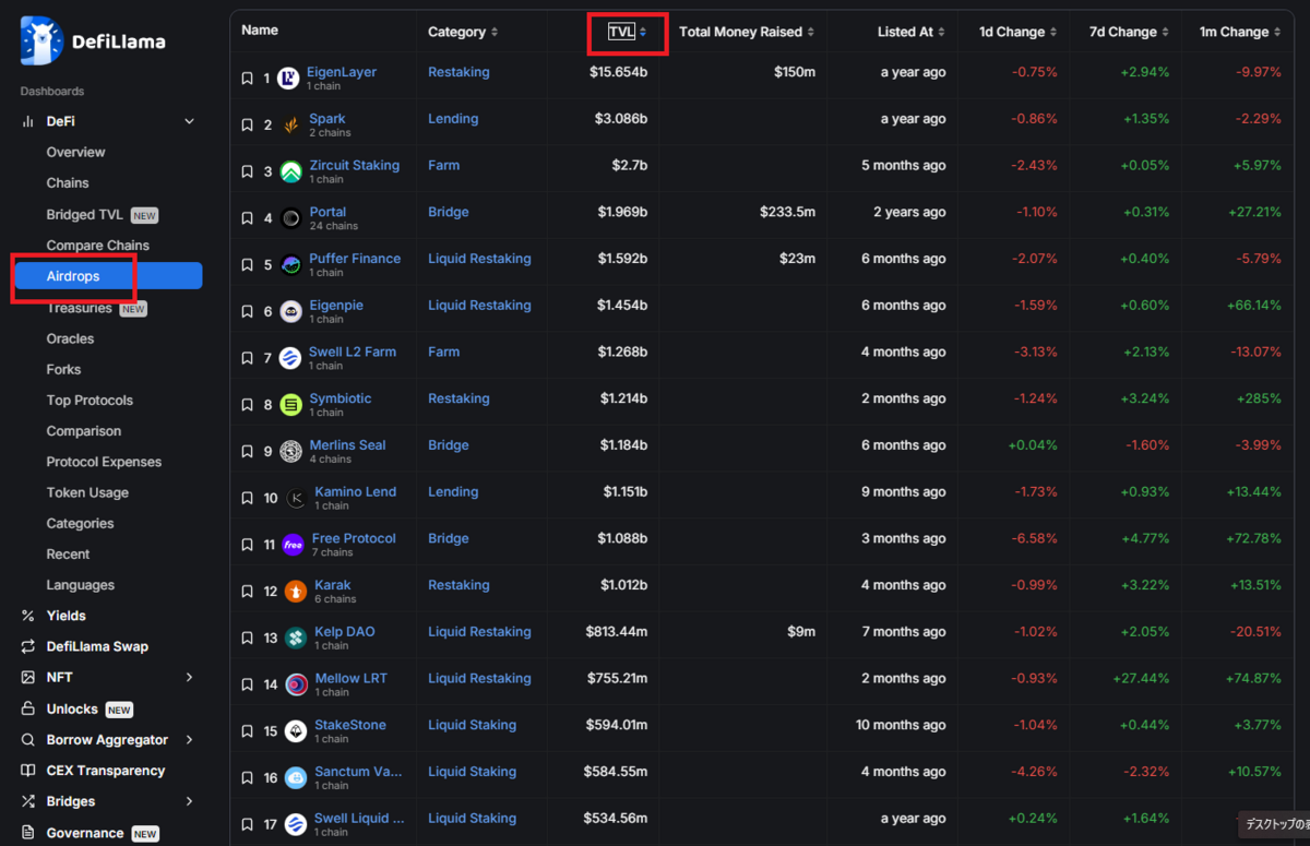 MantaCedefiからは資金を引き上げる予定なので、次の一手を考えています。DefiLlamaを活用したエアドロプロジェクトの探し方も共有します!👇