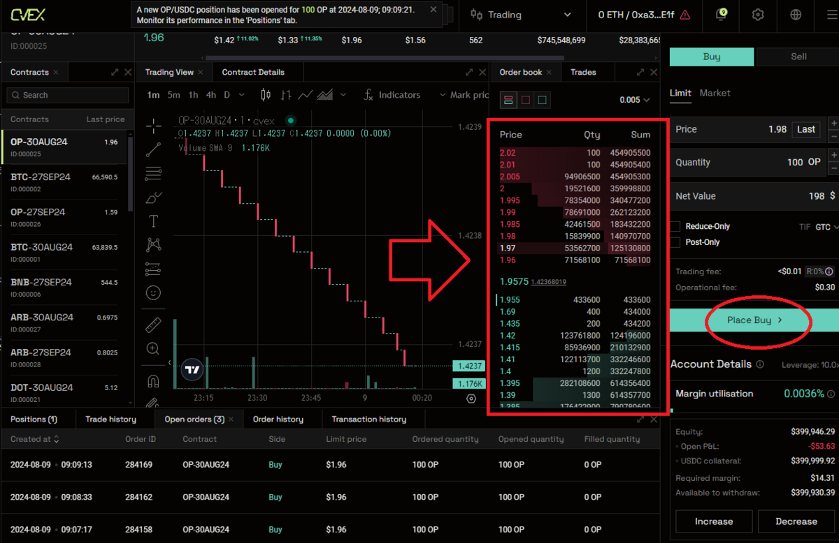 - 📈 テストネットでロングポジションを開く