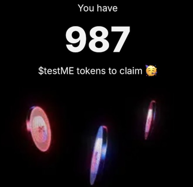 - 👆スマホのアプリに戻り、TOPに表示されてるバナーの「Claim $testMe Now!」をタップ