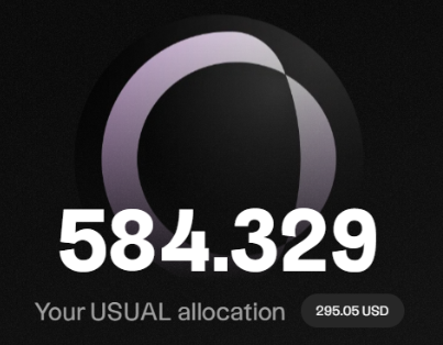 私も約5ヶ月前から注目し、約1,000ドルほど入れっぱなしにしてました。今回のエアドロップチェッカーで確認したところ、584 USUAL(プレマ価格で約300ドル、日本円にして約45,000円相当)の割り当てとなりました。