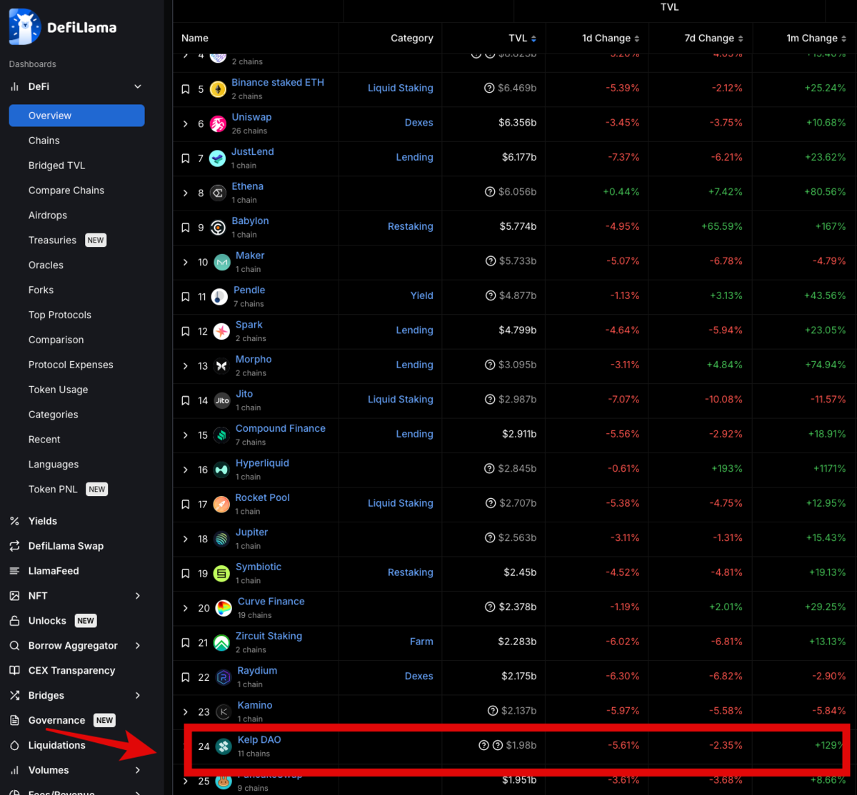 KelpDAOの実力は本物!🏆 Defillamaで見ると全体ランキング24位、TVLも約2bと驚異的な規模です。KERNELのエアドロップは総供給量の20%(シーズン1で10%)の配布予定。シーズン1は2024年12月31日までとの長期戦でした。💦