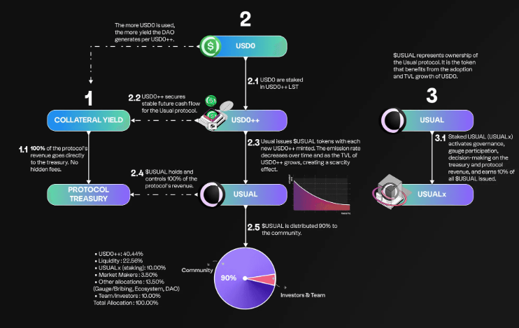 コミュニティ主導で設計された$USUALトークンは、プロトコルの収益をステーカーに還元し、長期保有者への報酬を重視した独自の経済モデルを採用。