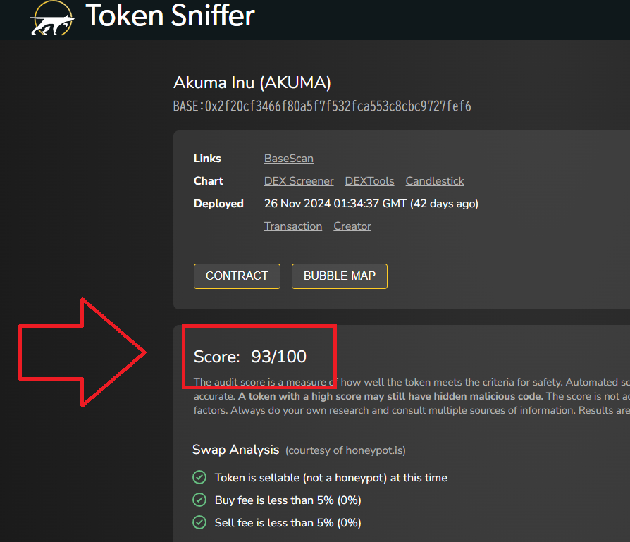 ⚡ トークン売却前に、TokenSniffer(https://tokensniffer.com/)を確認