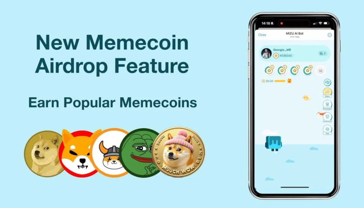 こんにちは、MIZUでエアドロップを狙っている皆さん!😊 朗報です!MIZUに新機能が追加され、ミームコインが獲得できます。🎉 まだ参加していない方も、これを機にMIZUの世界に飛び込んでみませんか?