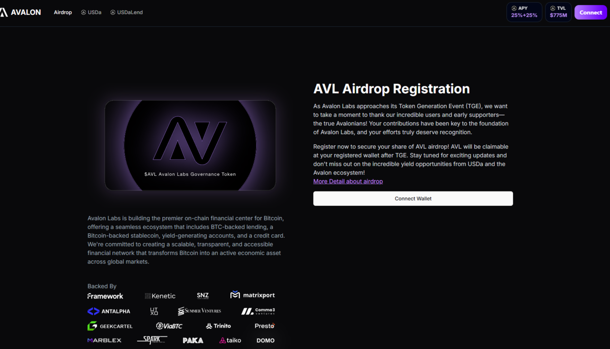- 🌐 エアドロップ登録ページ(https://avl.avalonfinance.xyz/airdrop/)を開く