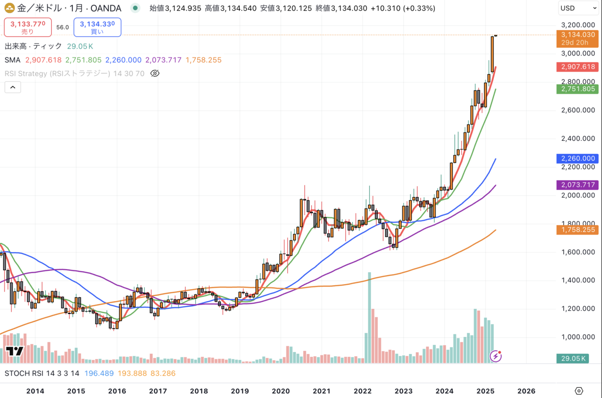 - 🚀 3月も上昇を継続し、3,134ドル付近で過去最高値を更新