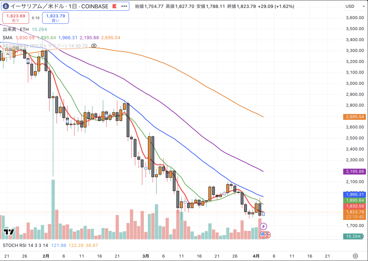 イーサリアム日足:弱気トレンド