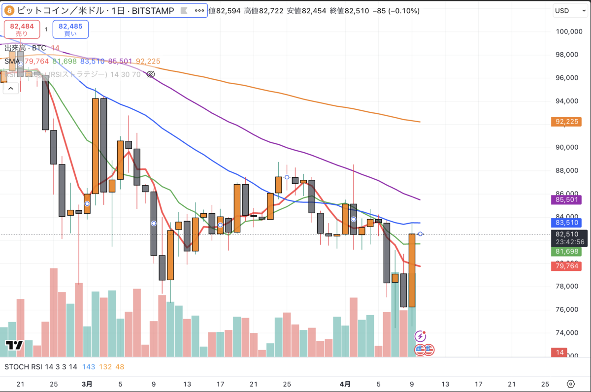 - 📉 日足では急落後の反発となり、大暴落後のV字回復