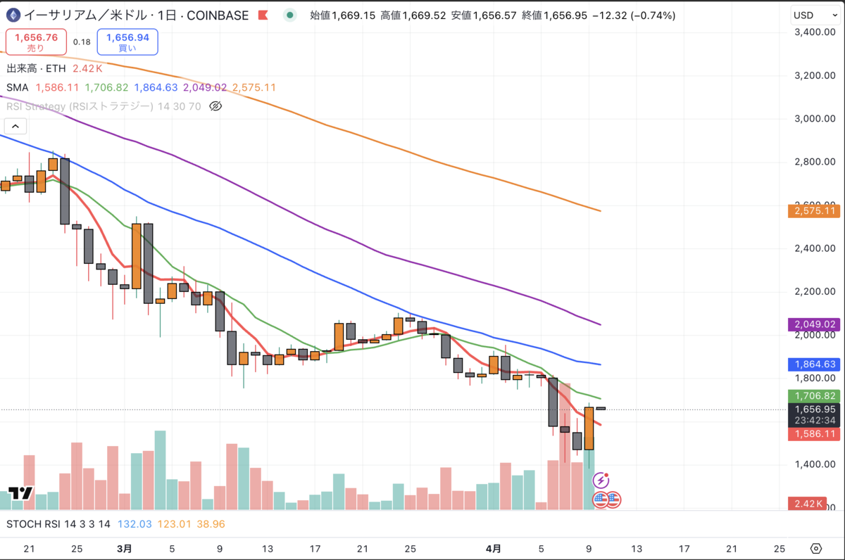 イーサリアム日足:反発も弱さ継続
