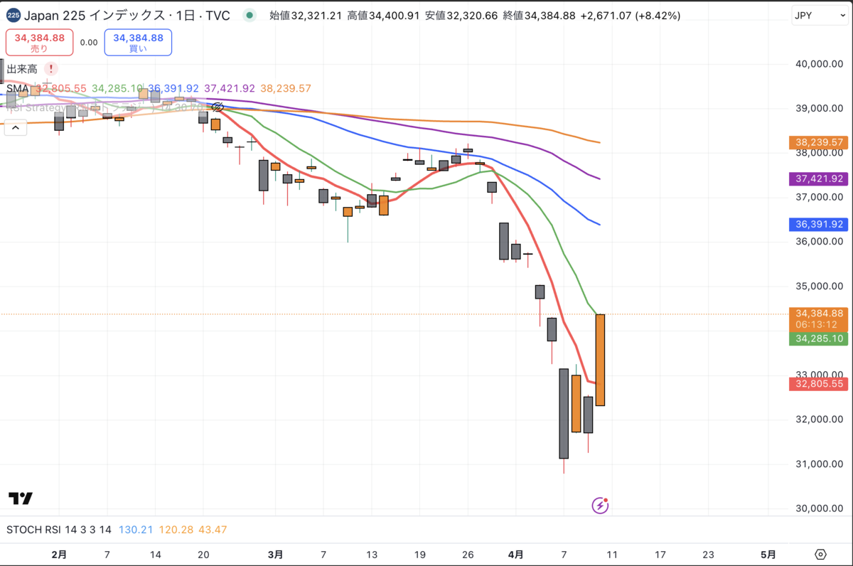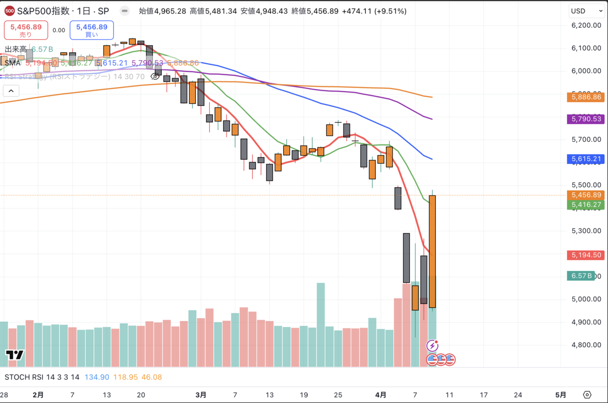 - 📈 S&P500同様に大幅反発の動きを見せるが逆パーフェクトオーダー中