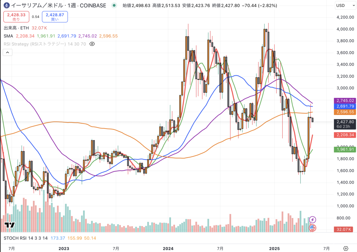 - 📈 3週続伸で$2,400台を回復。