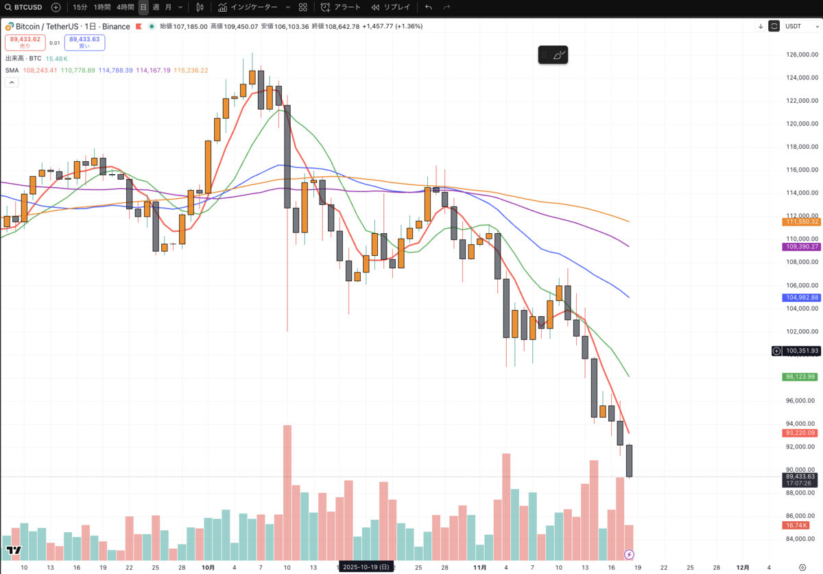 📉 日足で見るビットコイン:短期は完全に「戻り売りトレンド」