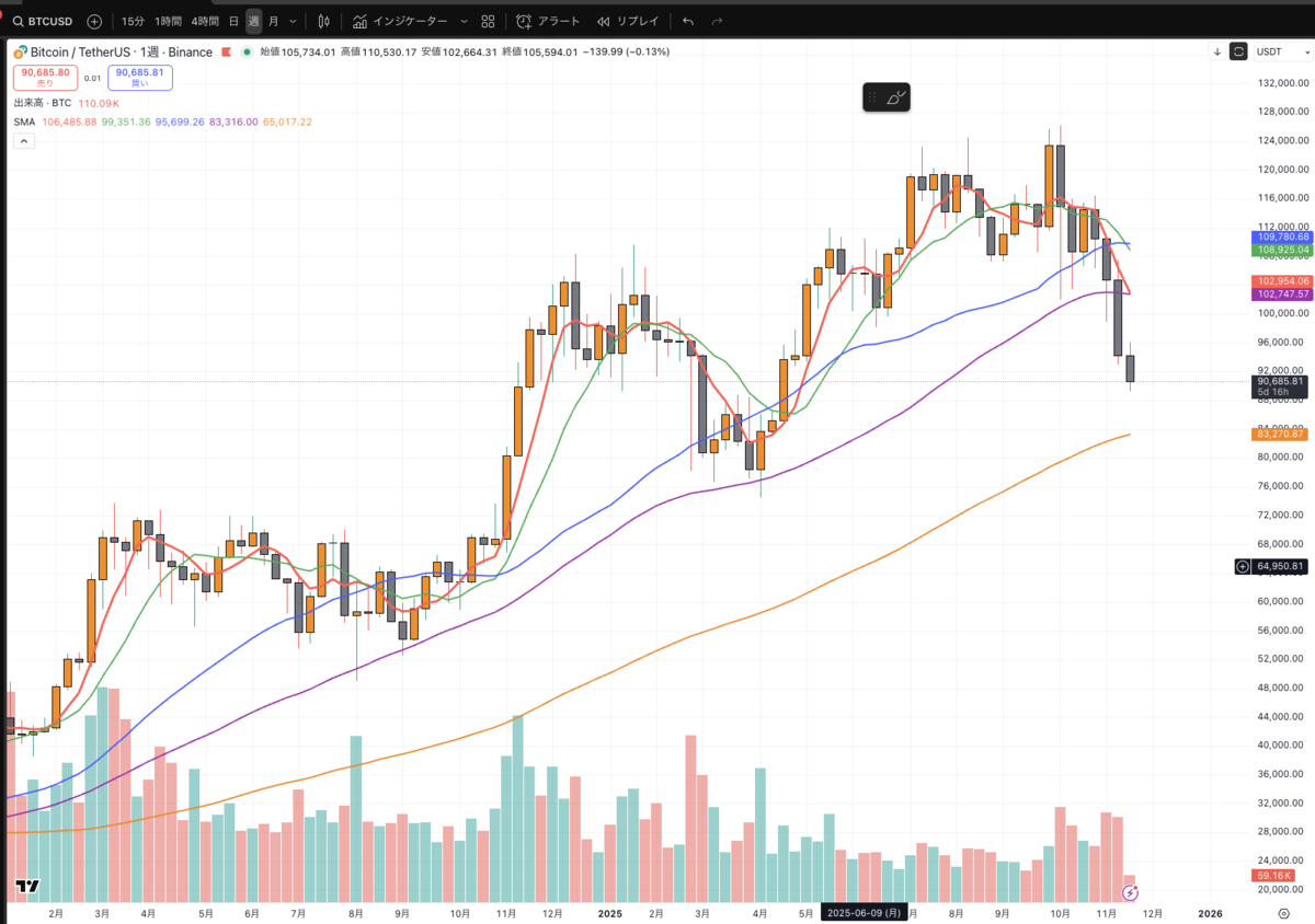 - 📆 週足で見るビットコイン:まだ「サイクル崩壊」ではない